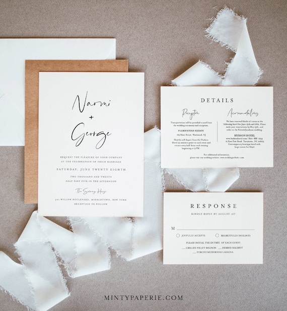 Minimalist Wedding Invitation Suite 100 Editable Template Etsy Uk